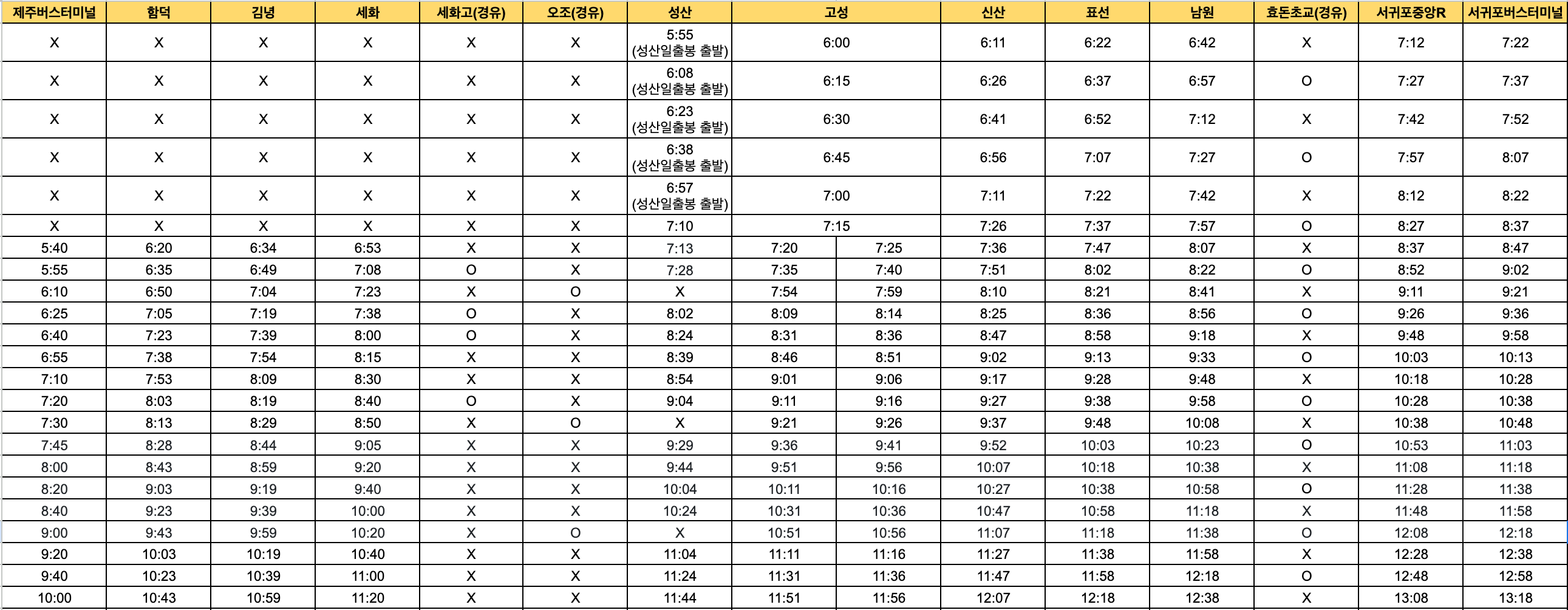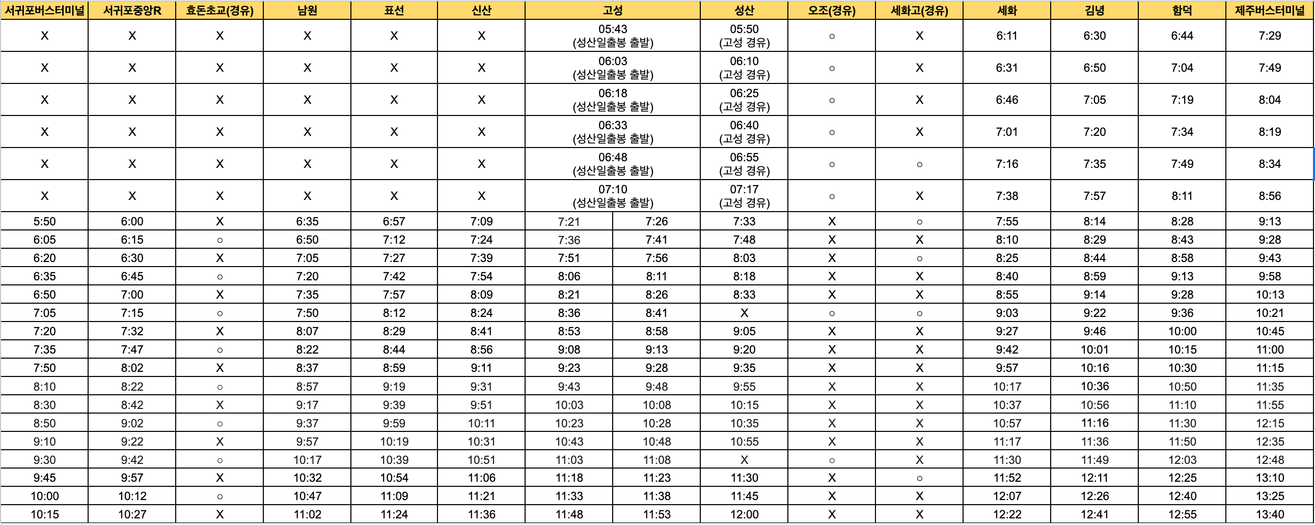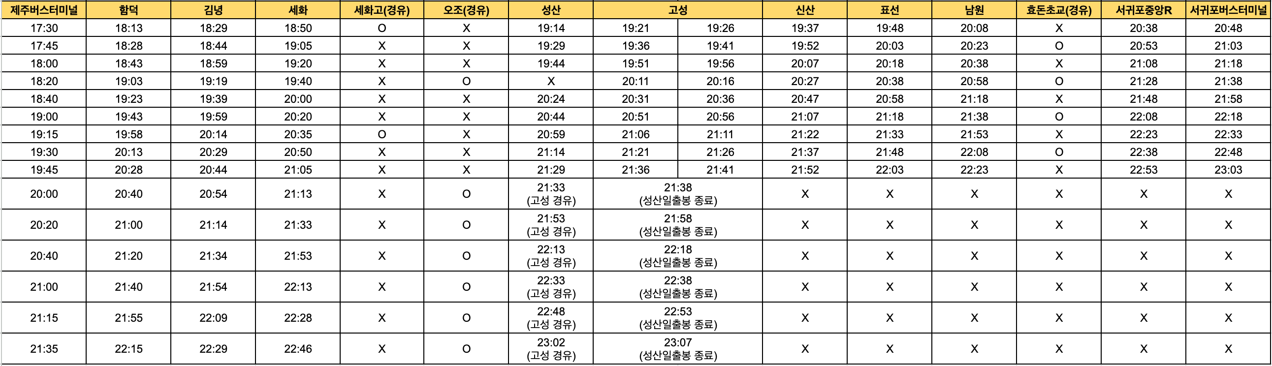 제주버스터미널➡일주동로➡서귀포 터미널 방향 노선, 시간표