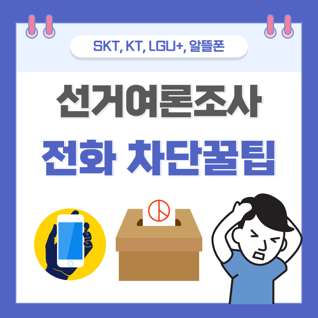 제22대 총선이 2달도 남지 않아서 그런지, 하루에도 3,4번씩 선거 여론조사 전화가 걸려오는 요즘입니다. 선거여론조사는 발신 전화번호도 계속 바꿔가면서, 안 받으면 받을 때까지 집요하게 걸려오는데요. 오늘은 걸려온 전화번호를 일일이 수신거부하지 않아도, 전화 한 통으로 모든 여론조사전화를 원천 차단할 수 있는 꿀팁을 통신사별로 자세히 알려드리겠습니다.