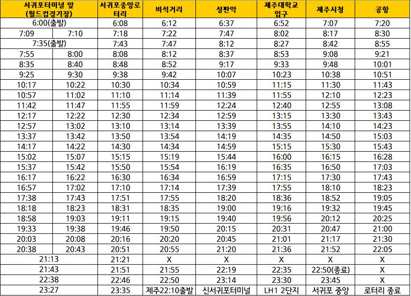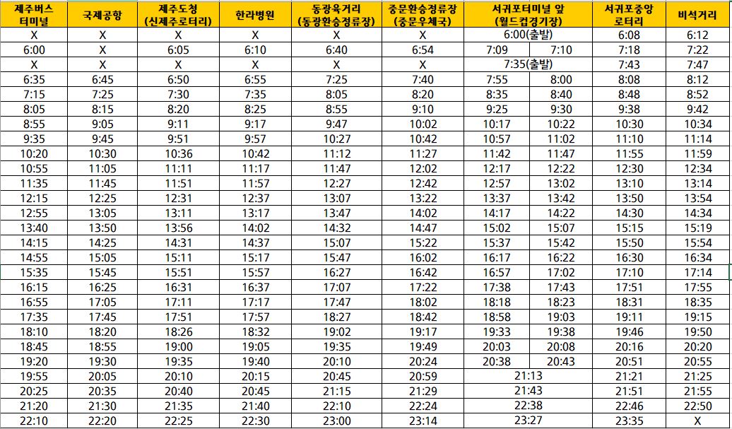 제주➡서귀포 방향 노선, 시간표