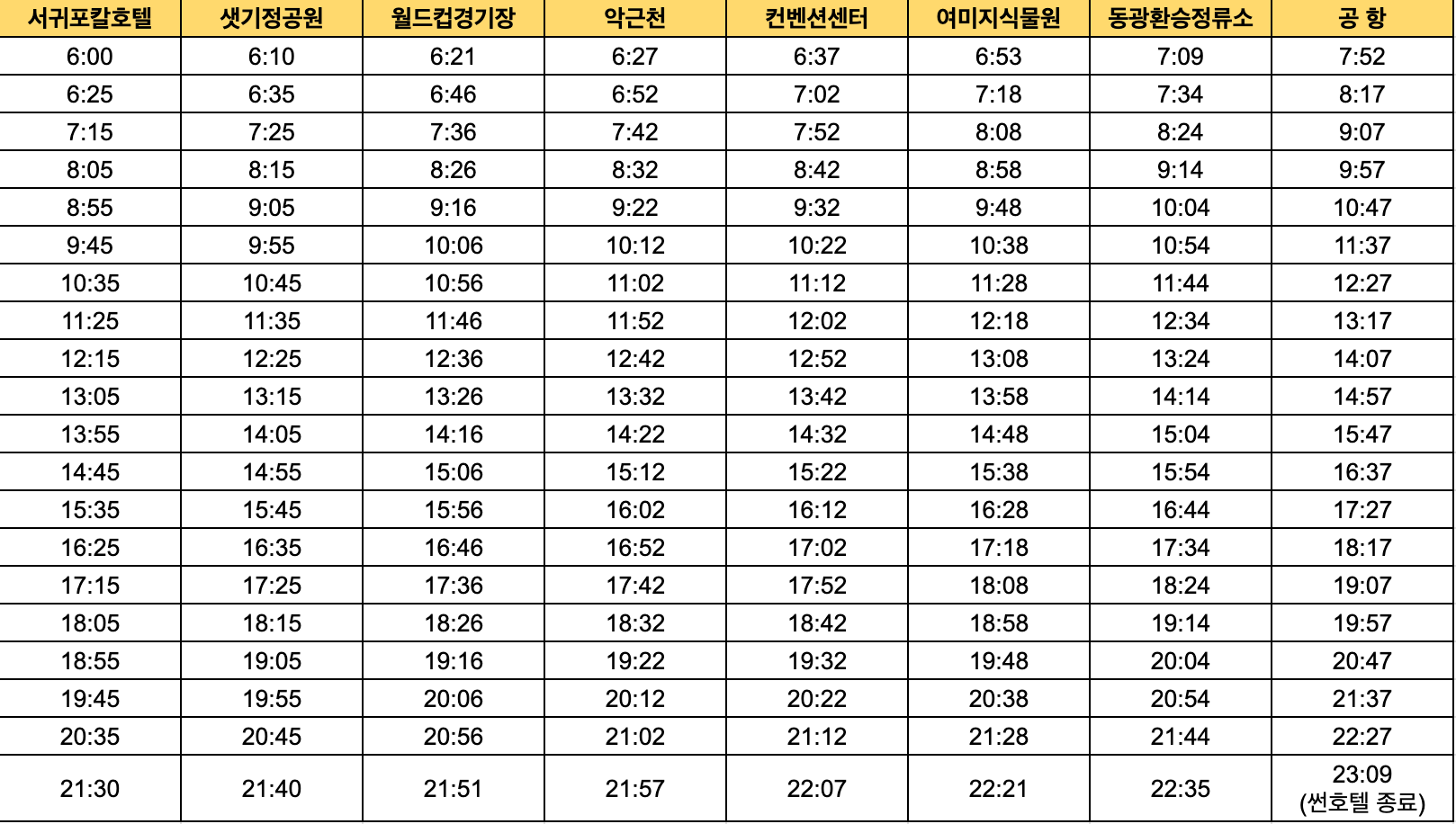 서귀포➡중문➡제주공항 방향 노선, 시간표
