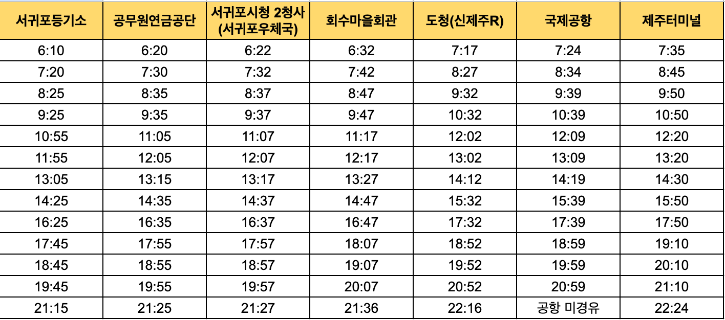 서귀포➡제주 방향 노선, 시간표